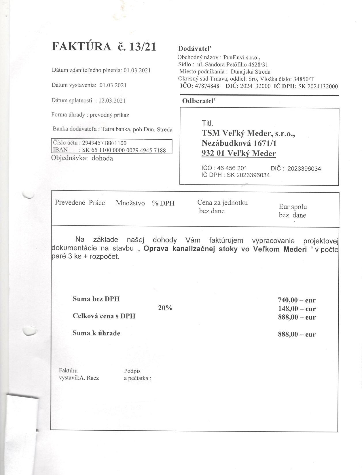 - Názov organizacieTSM Veľký Meder, s.r.o.