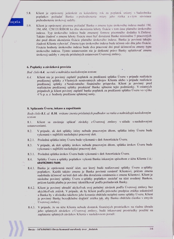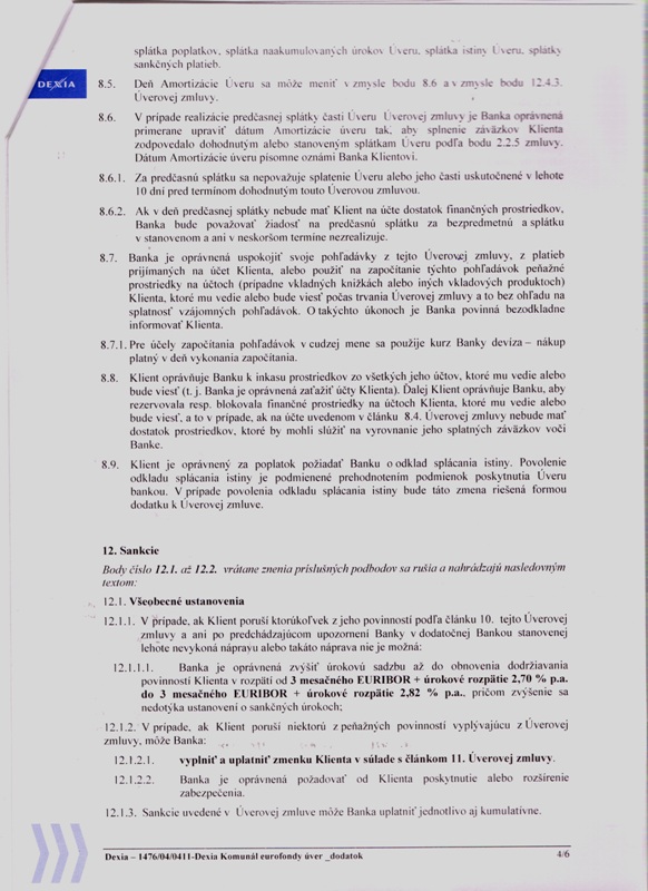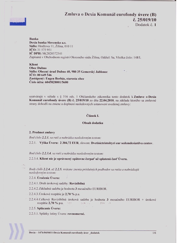 - Názov zmluvyZmluva o Dexia Komunál eurofondy úvere (B)