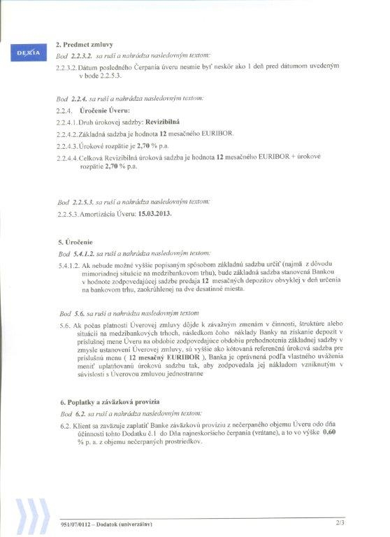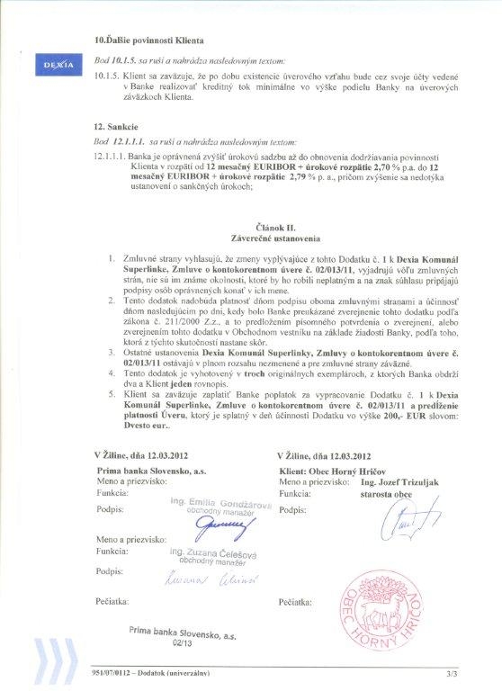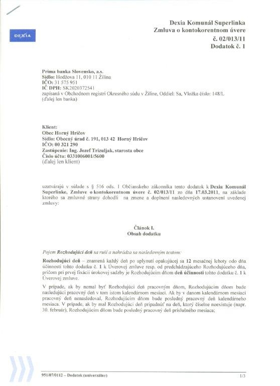 - Názov zmluvyDexia komunál Superlinka Zmluva o kontokorentnom úvere č. 02/013/11 Dodatok č. 1