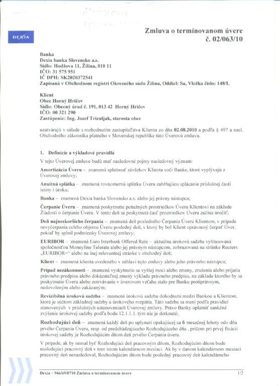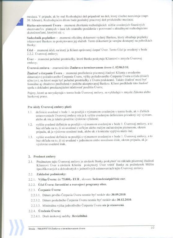 - Názov zmluvyZnluva o termínovanom úvere č. 02/063/10