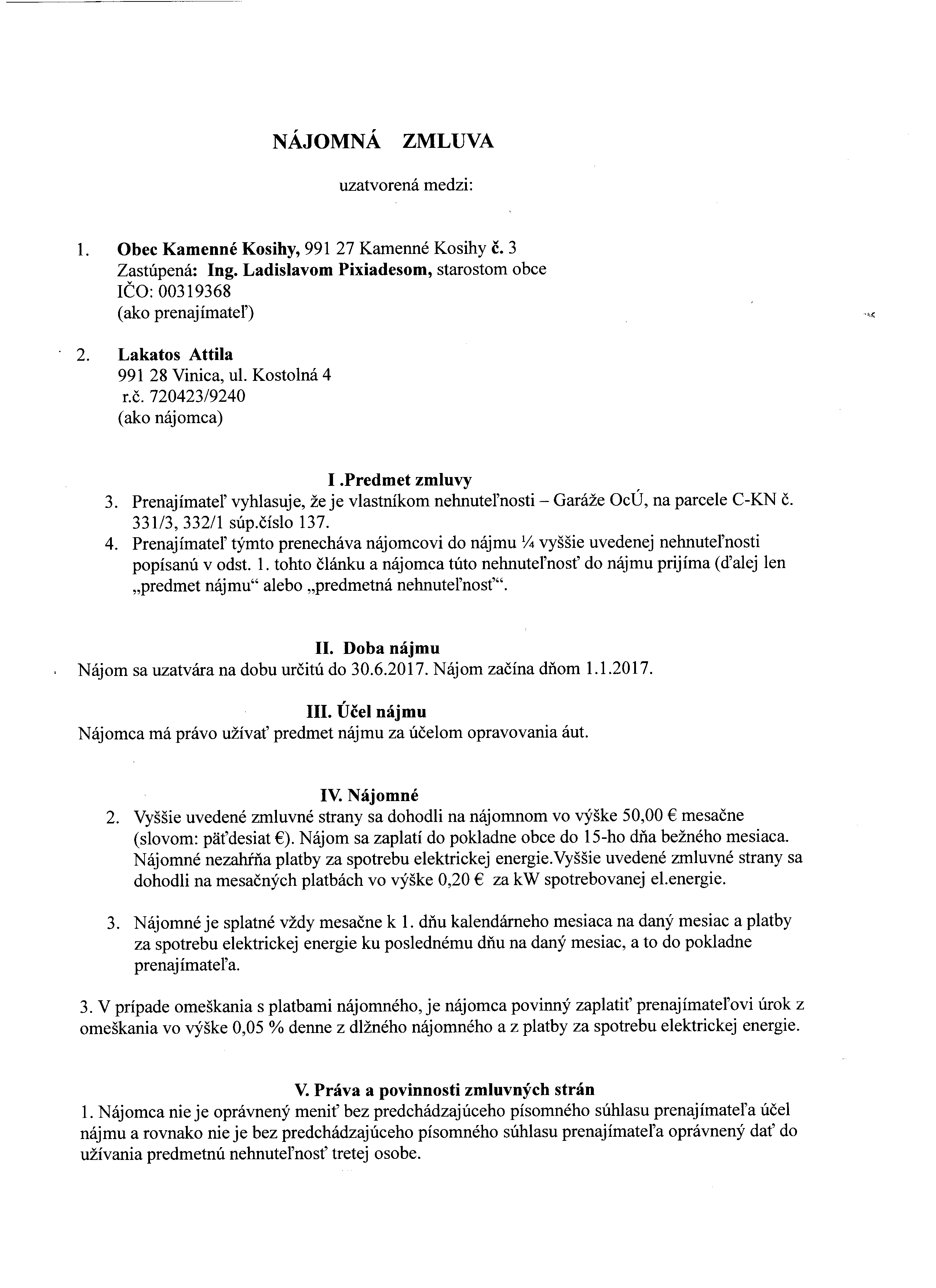 Detail zmluvy číslo 1/2017