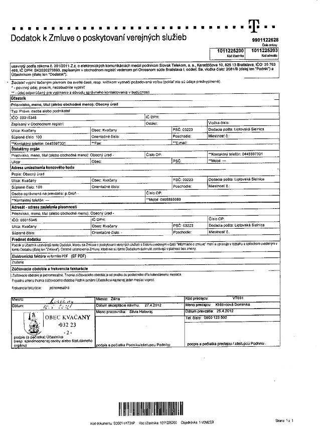 - Názov zmluvyDodatok k Zmluve o poskytovaní verejných služieb