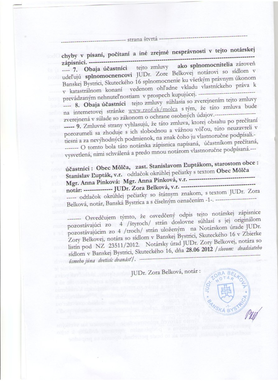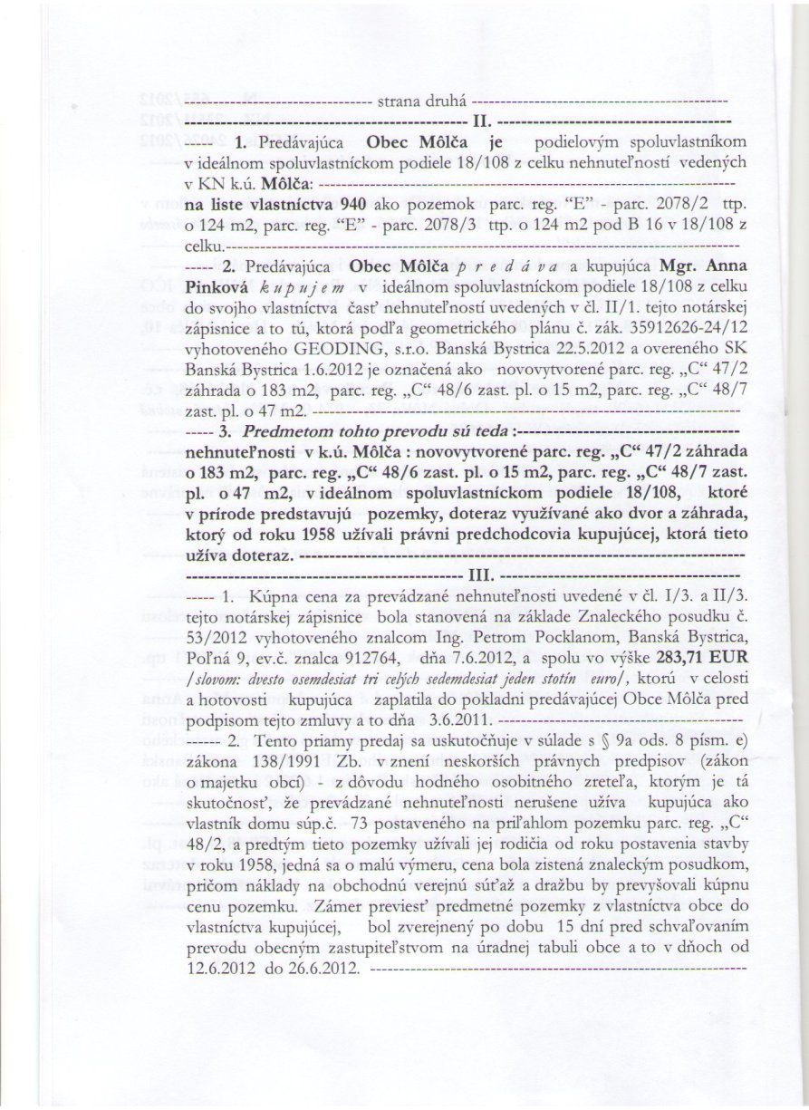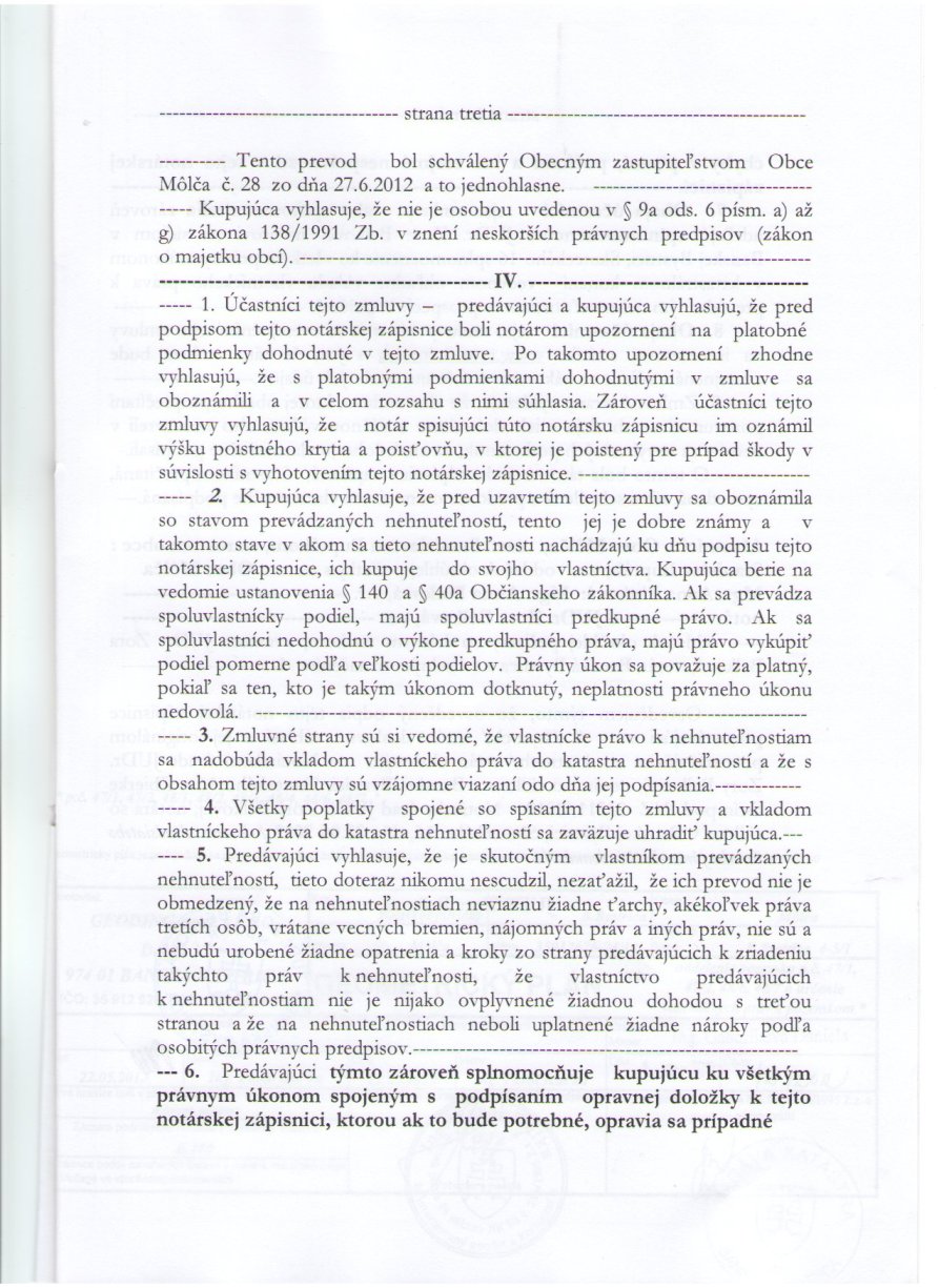 - PoznámkaPredaj pozemku za účelom majetkového vyporiadania - Zmena zmluvy 1/2011, zo dňa 3.6.2011