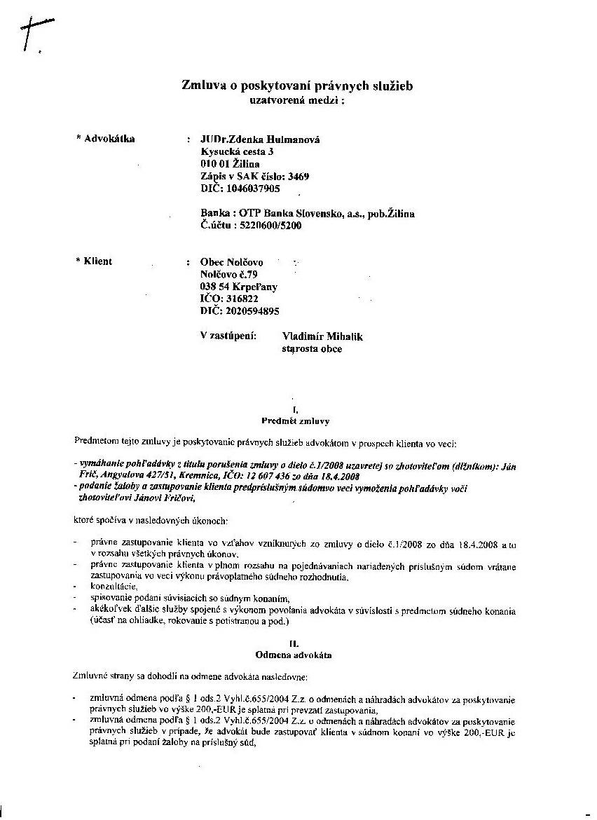 - Názov zmluvyZmluva o poskytovaní právnych služieb