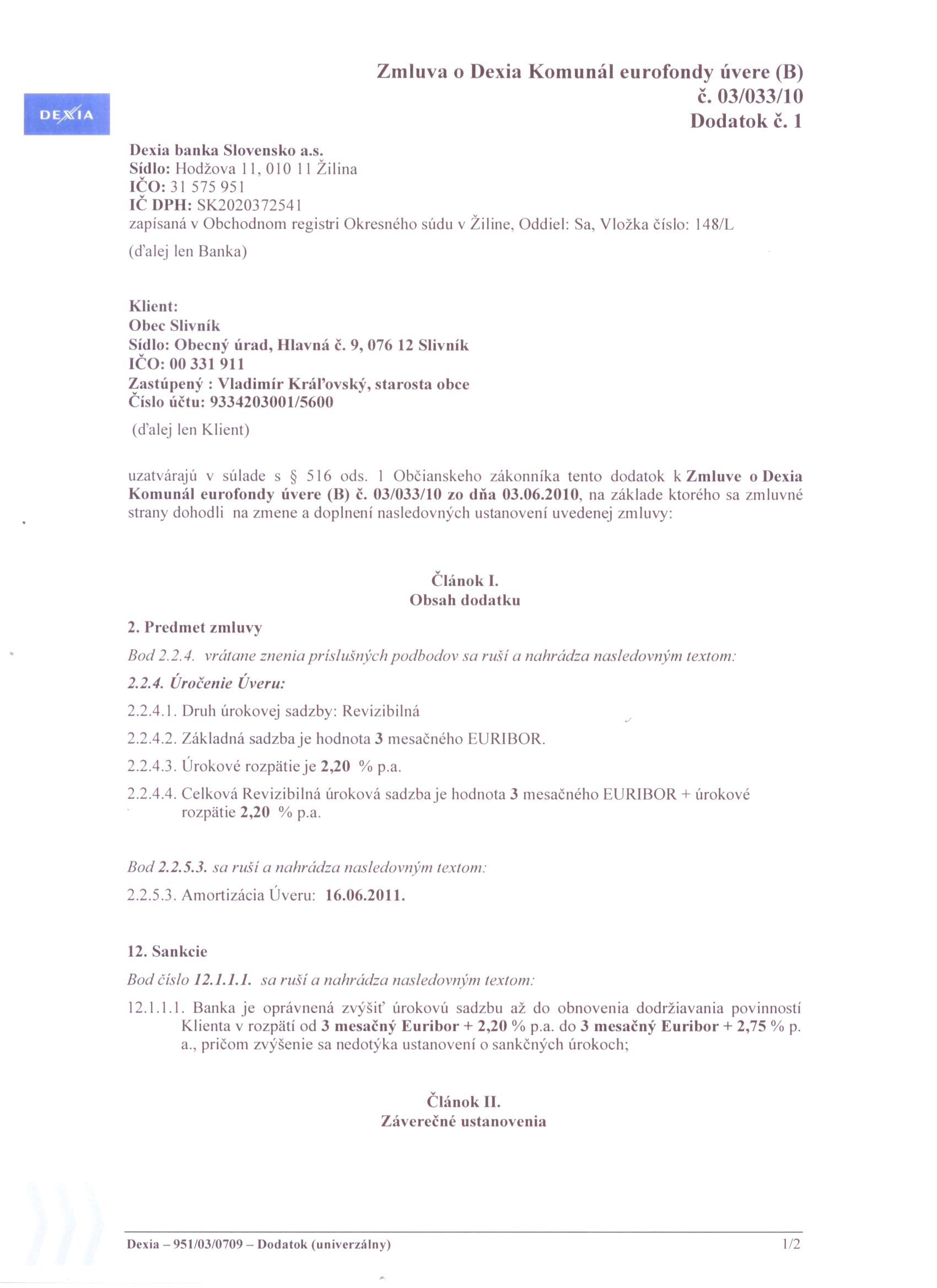 - Názov zmluvyZmluva o Dexia Komunál eurofondy úvere /B/