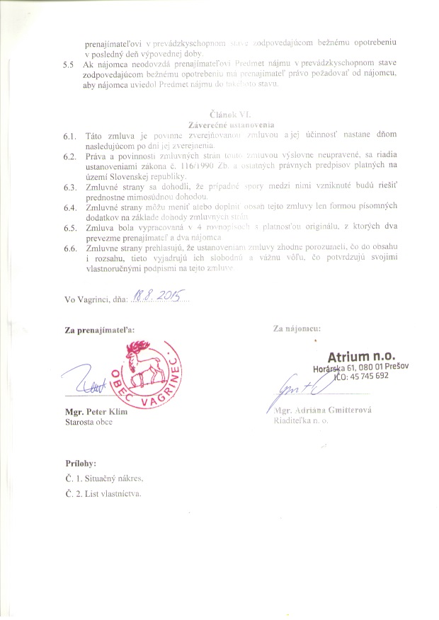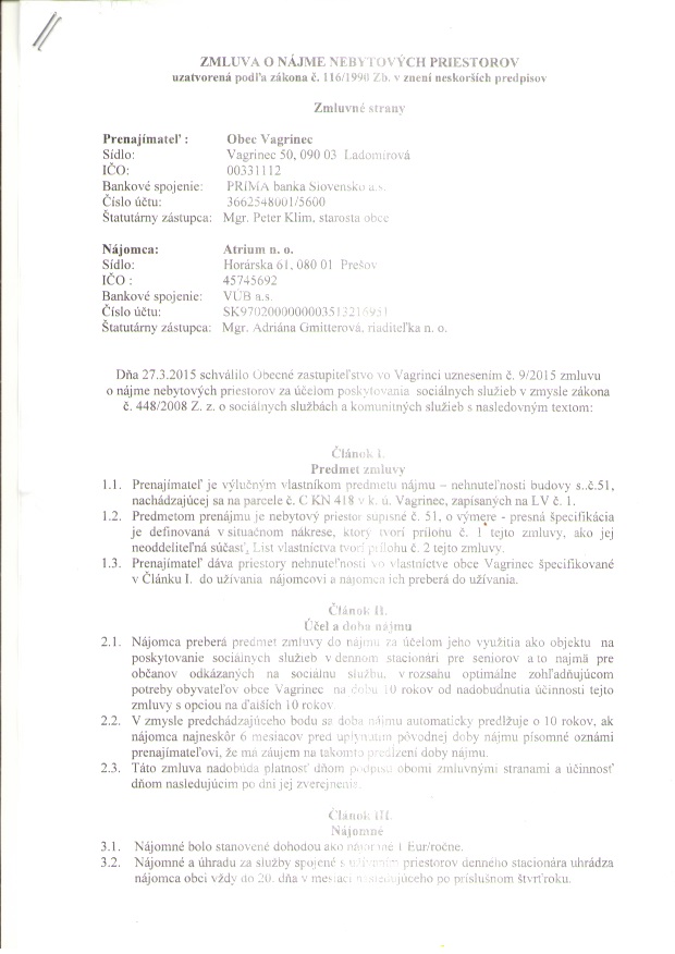 Detail zmluvy číslo 1/2015