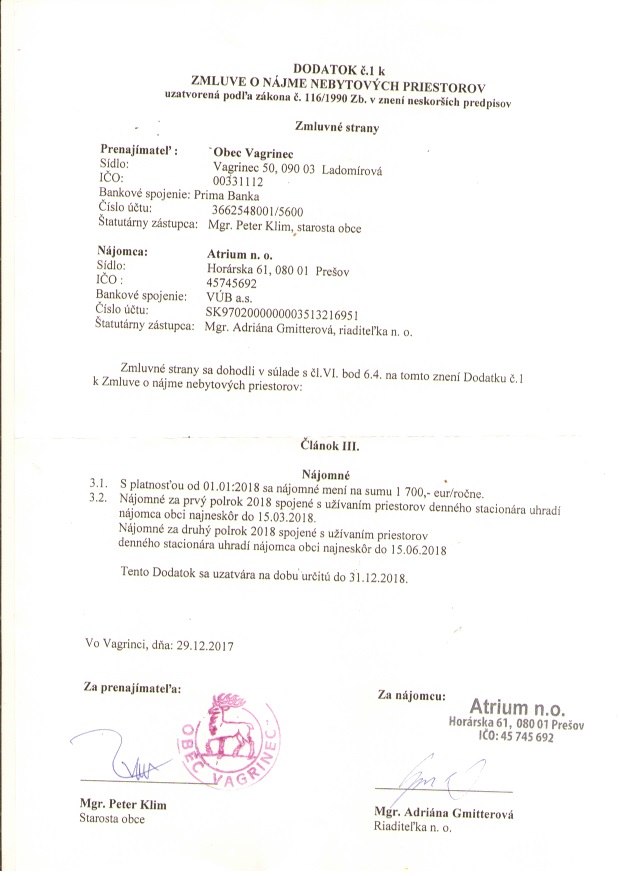 - Názov zmluvyDodatok k zmluve o najne nebytových priestorov