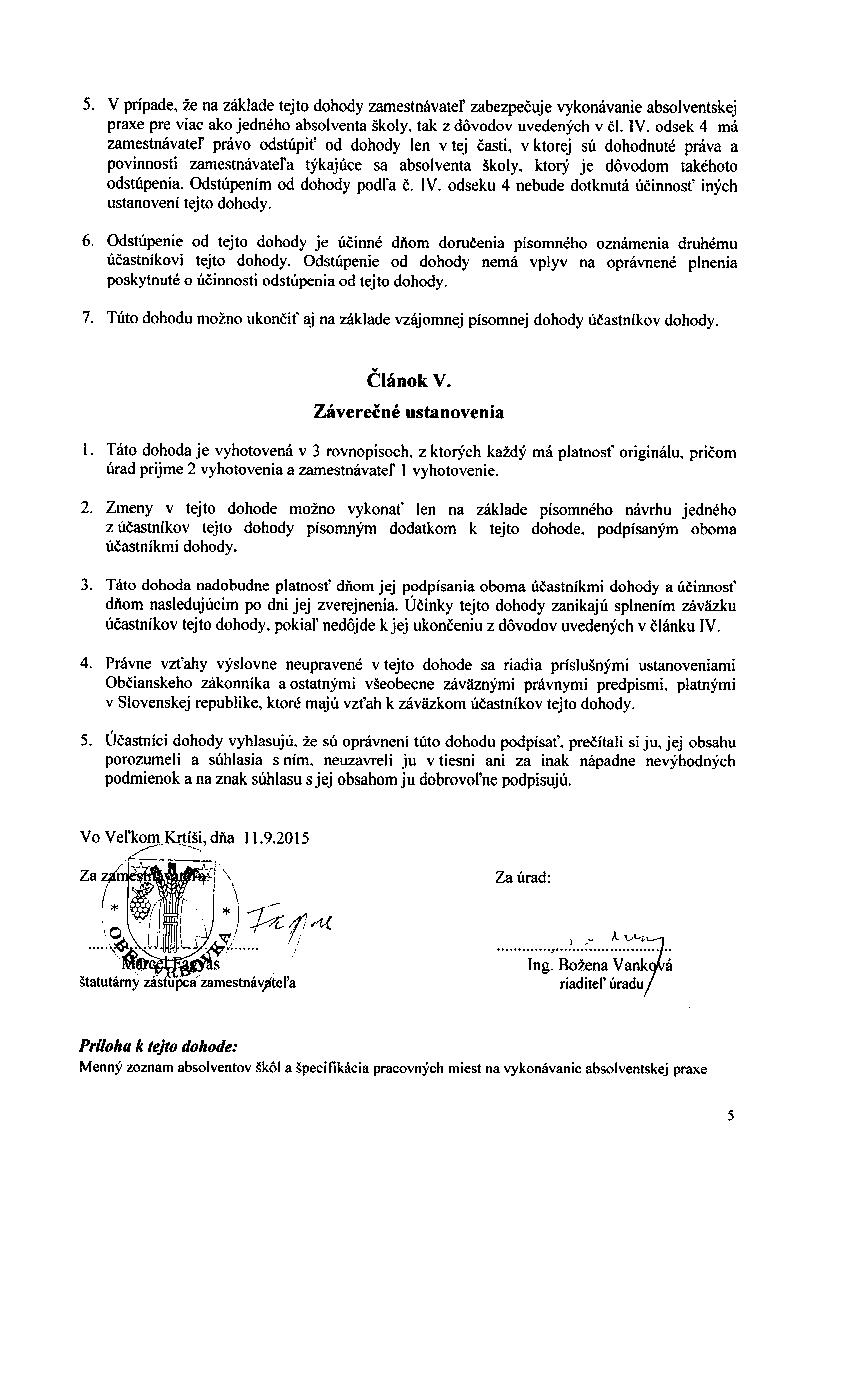 - Názov zmluvyZmluva o zabezpečení podmienok vykonávania absolventskej praxe