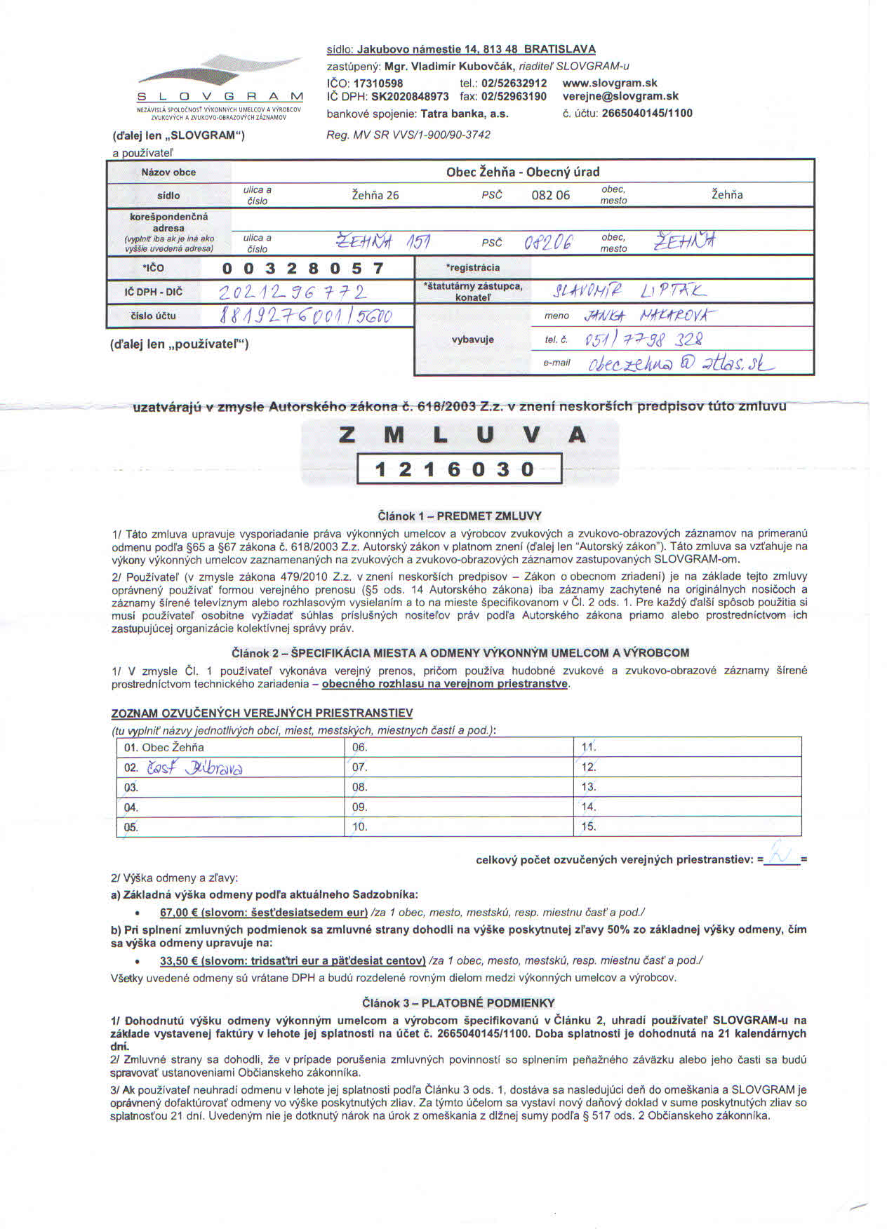Detail zmluvy číslo 1216030