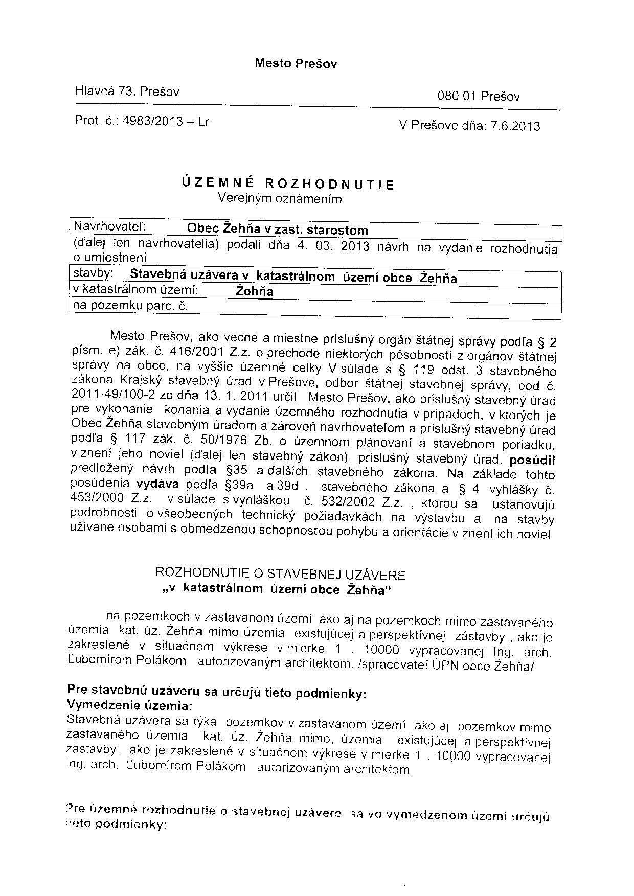 - Názov zmluvyÚzemné rozhodnutie