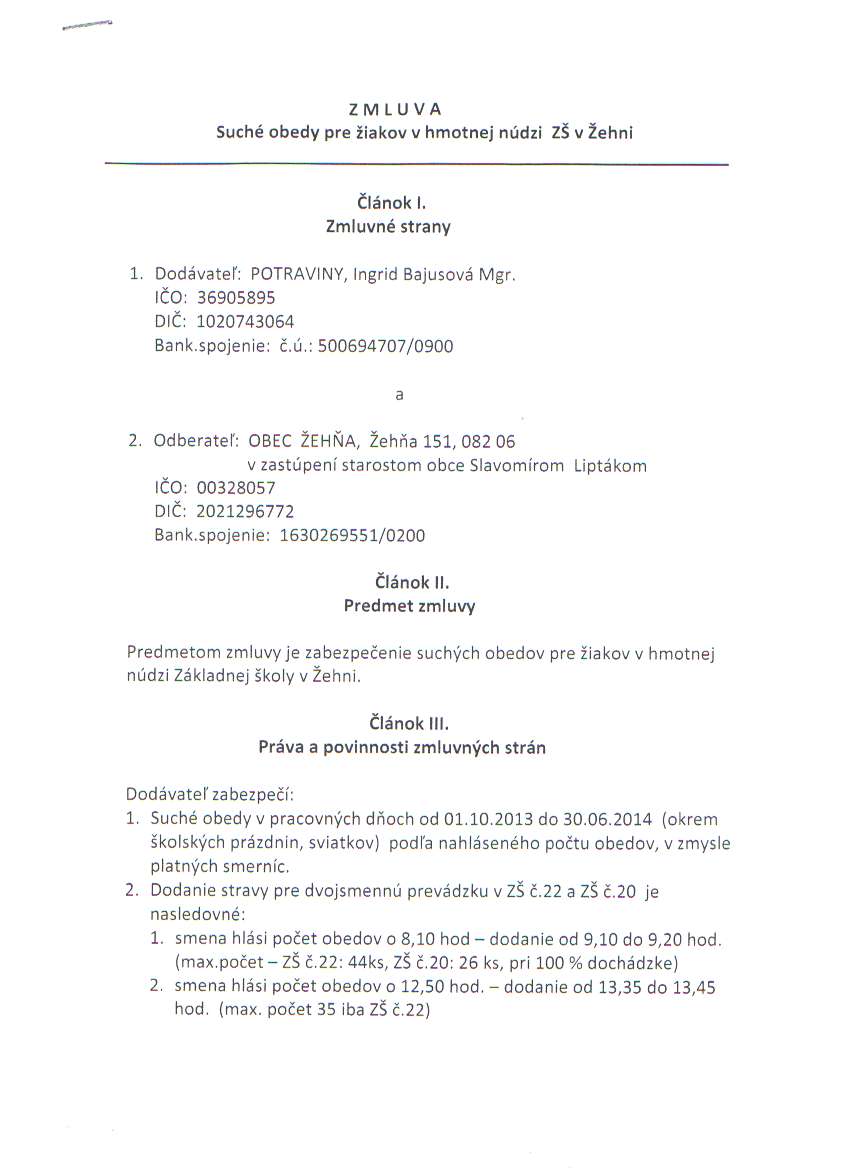 - Názov zmluvySuché obedy pre žiakov ZŠ v hmotnej núdzi